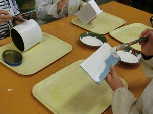 記憶を頼りに、試行錯誤して色を作ったり、模様を再現したりと、
