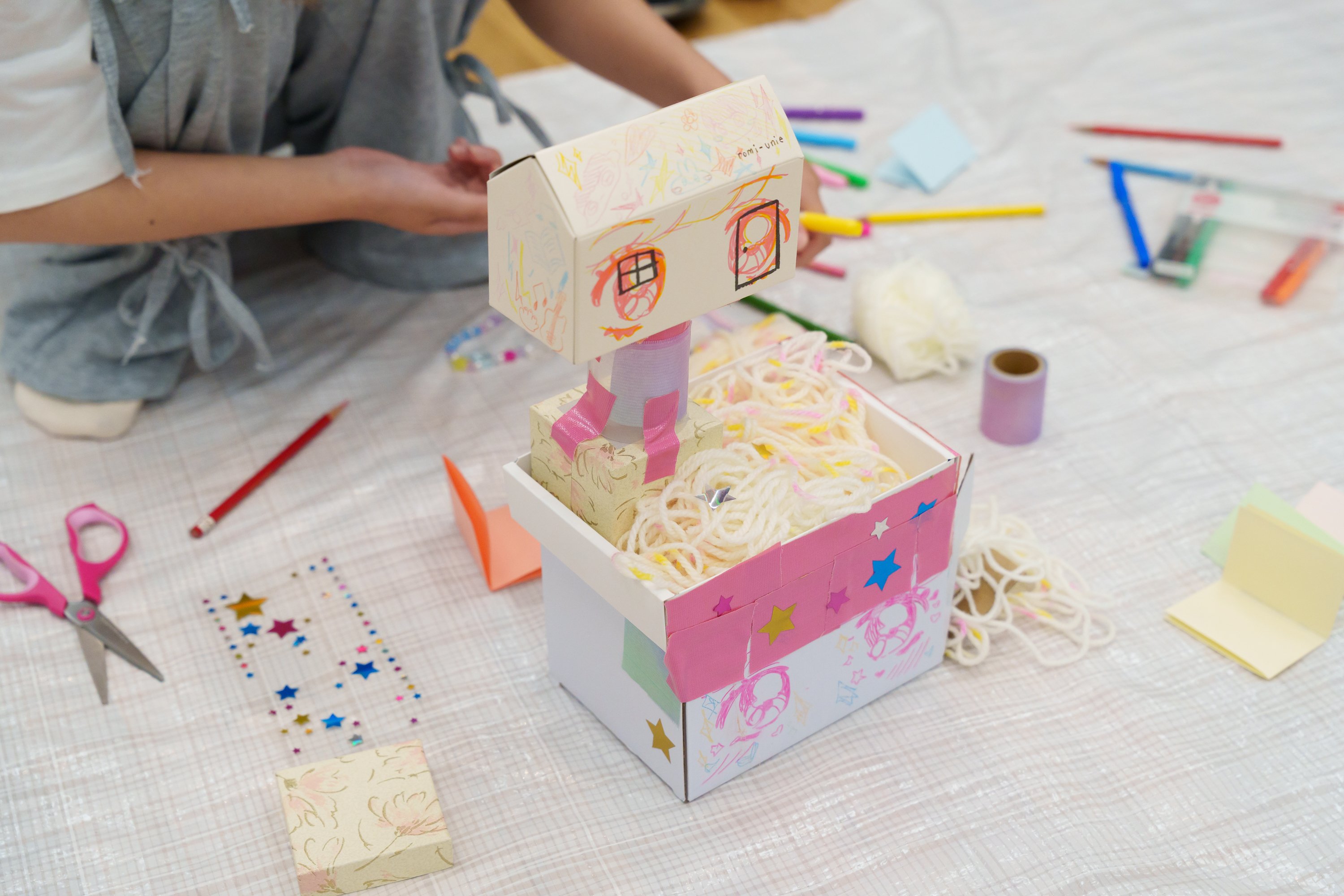 また、「工作や絵が苦手でも、なんとか完成できて楽しかった。正解がないのがよかった」というコメントも。制作に自信がなかった方も、ミッションを自由に解釈し、ミッションの指示によって自然と手が動き、思いもよらない作品が生まれていく過程そのものを楽しんでいる様子が印象的でした。