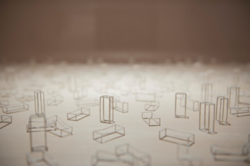 消しゴム、鉛筆の芯、栞の紐、原稿用紙・・・等を文具を用いた繊細な作品は、一度見たら忘れられない深い印象を残します。
