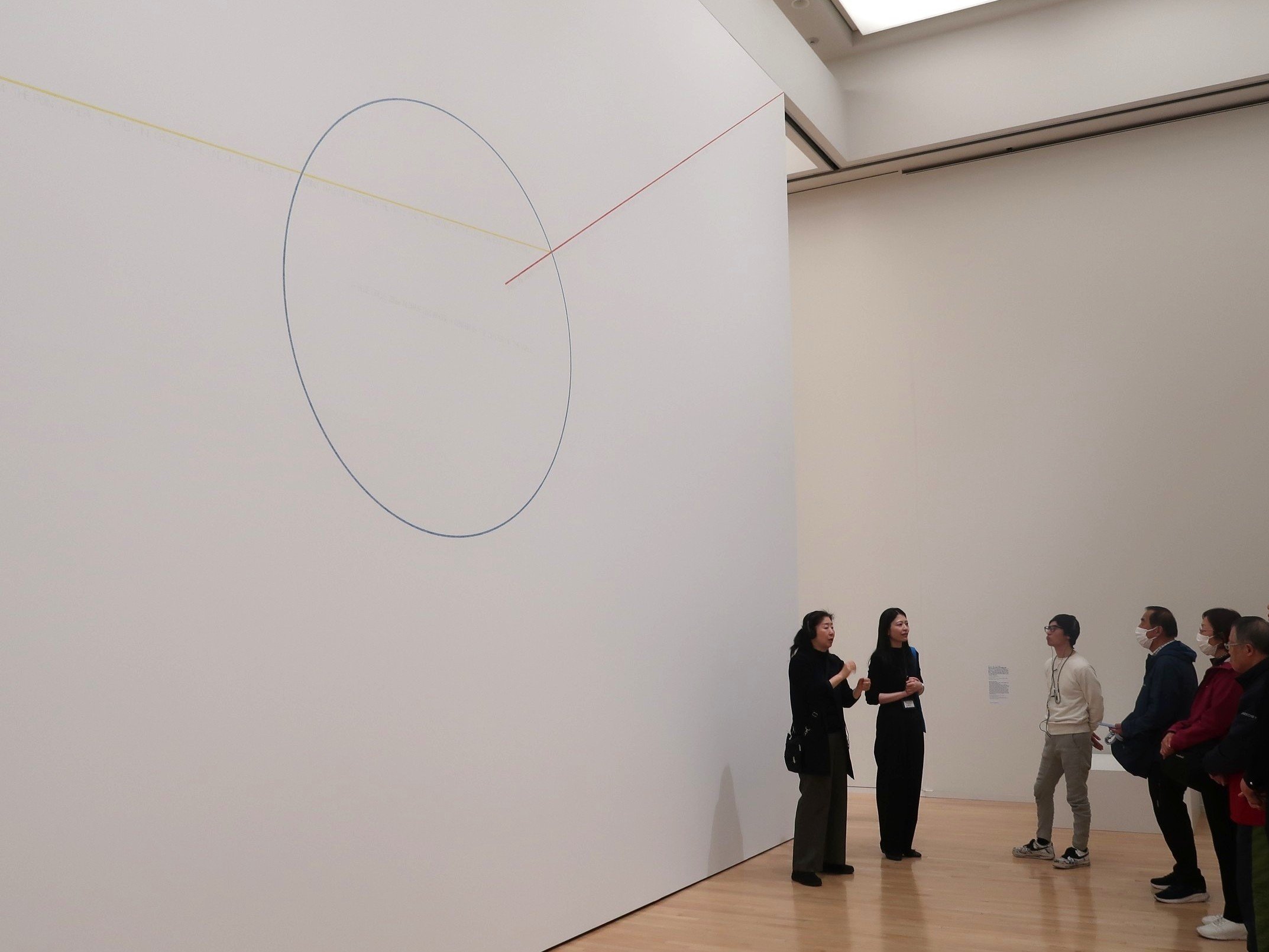 続いてこちらは《ウォール・ドローイング #770 カラー・インク・ウォッシュを塗り重ねた非対称のピラミッド》の前での様子です。