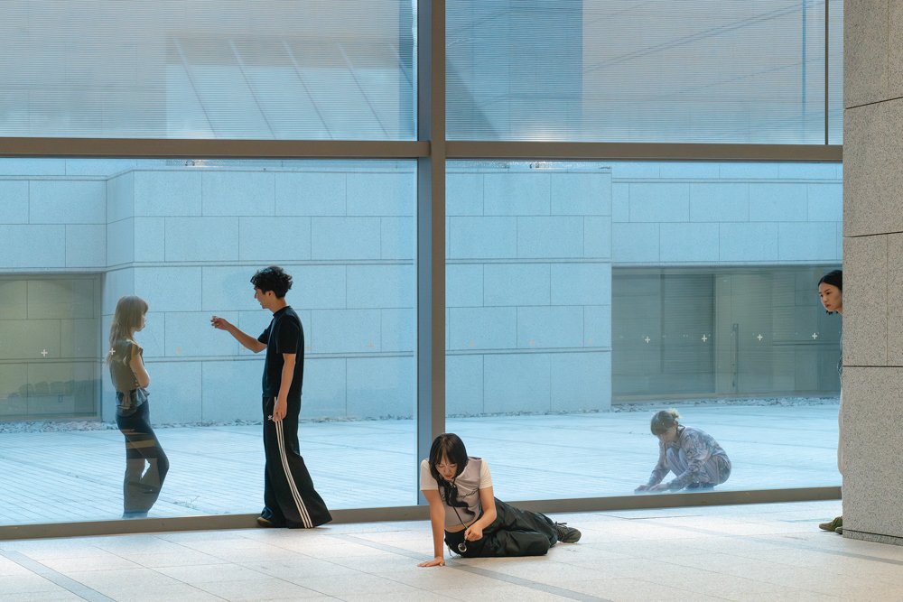 本パフォーマンスは、今回のために集まったアーティスト5人が、美術館を人と人、身体と思考が交差する「集まり」の場として捉え直す協働的なプロジェクトです。普段別々の活動をしているアーティスト同士が、7日間を通し、互いをリードし合ったり、共同したりと、館内各所で対話や即興的なパフォーマンスを行います。