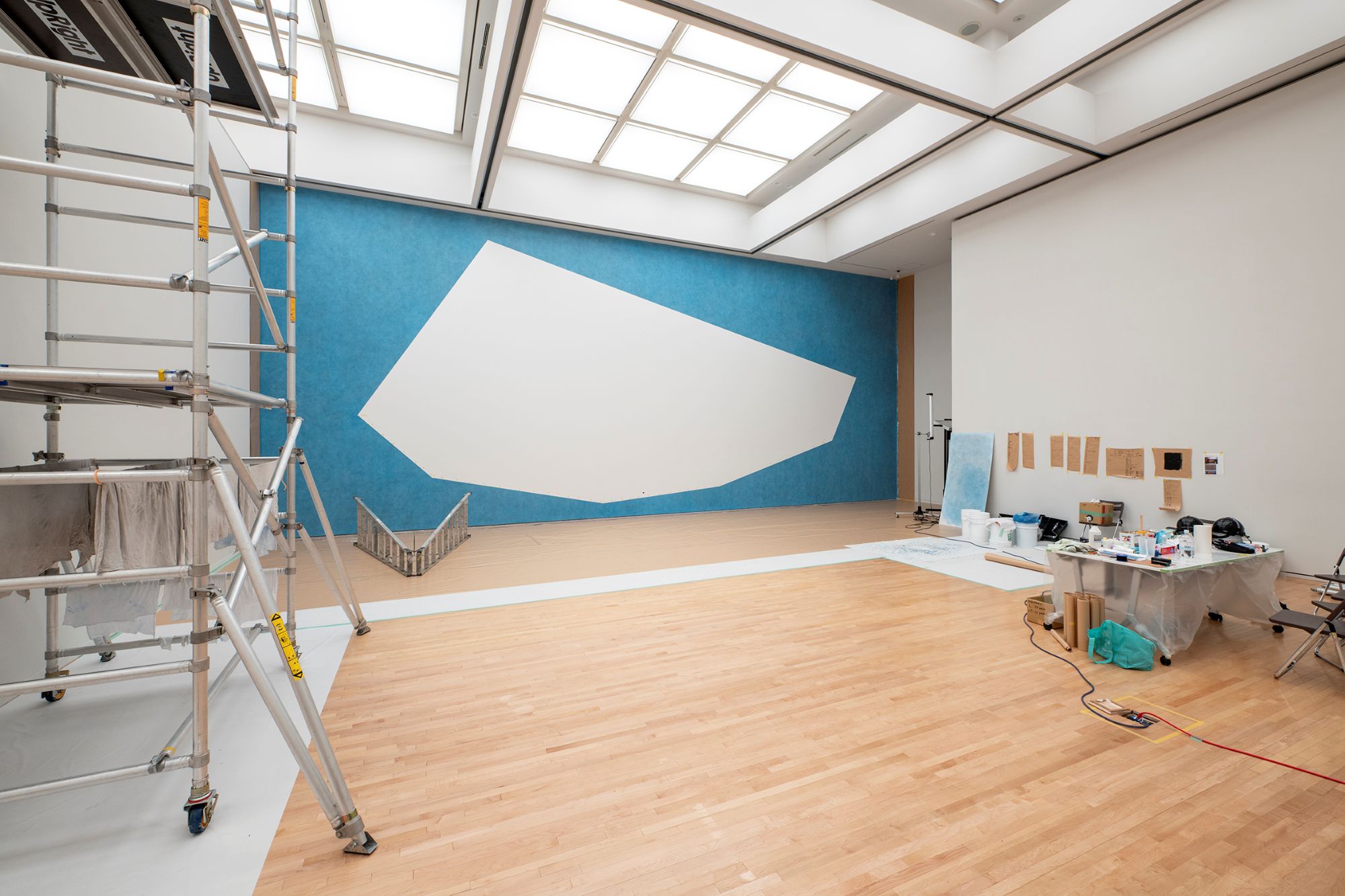 「展覧会のストラクチャーをひらく」と題するプログラムの第二回では、本展の会場設営を統括した武市紀子氏を招き、本展担当学芸員とともに、ウォール・ドローイングの準備から制作までのプロセスを振り返ります。あわせて、展覧会という場の実現に不可欠なインストーラーの仕事について紹介します。